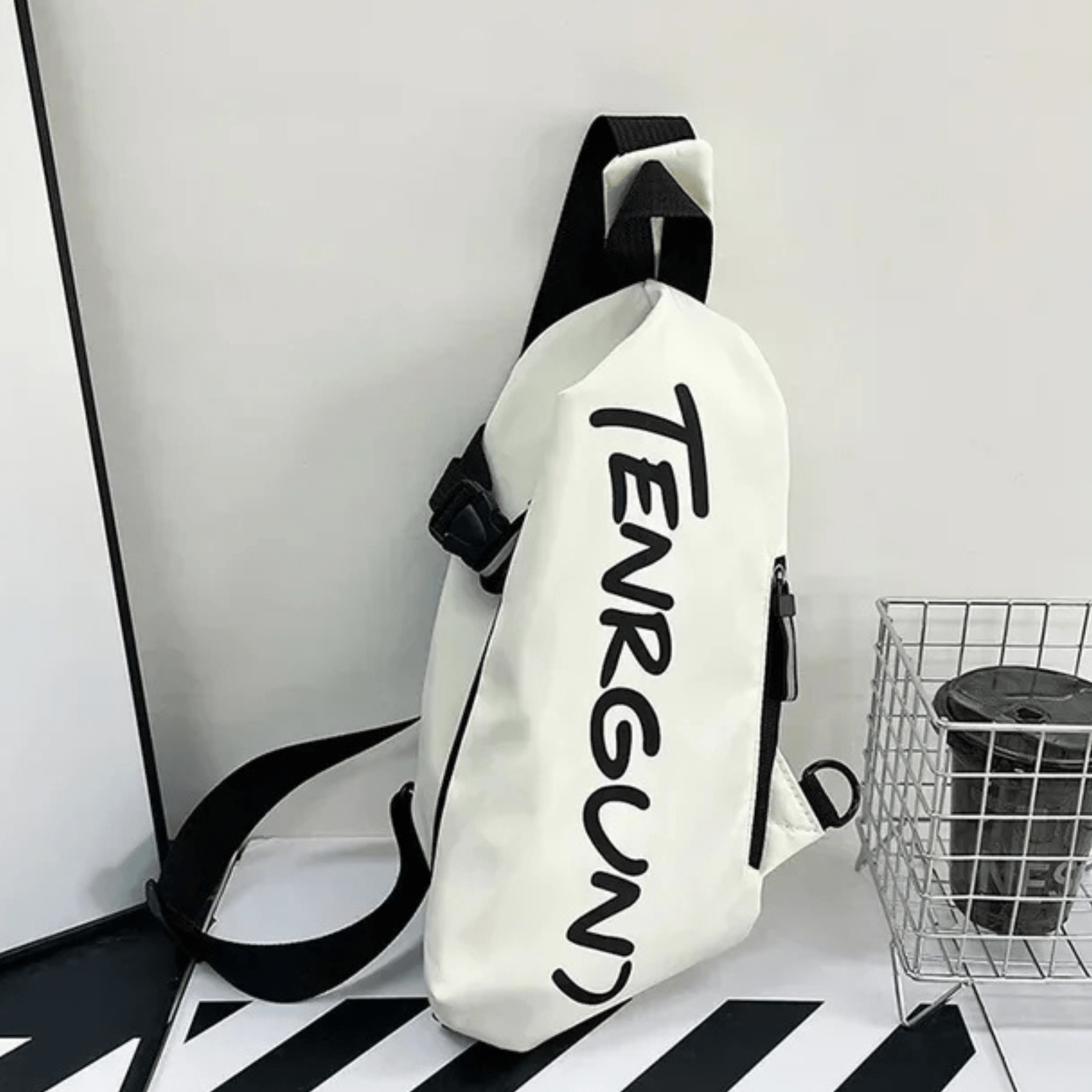 Chest Side Unisex Mens Side Bag Black Beige Color